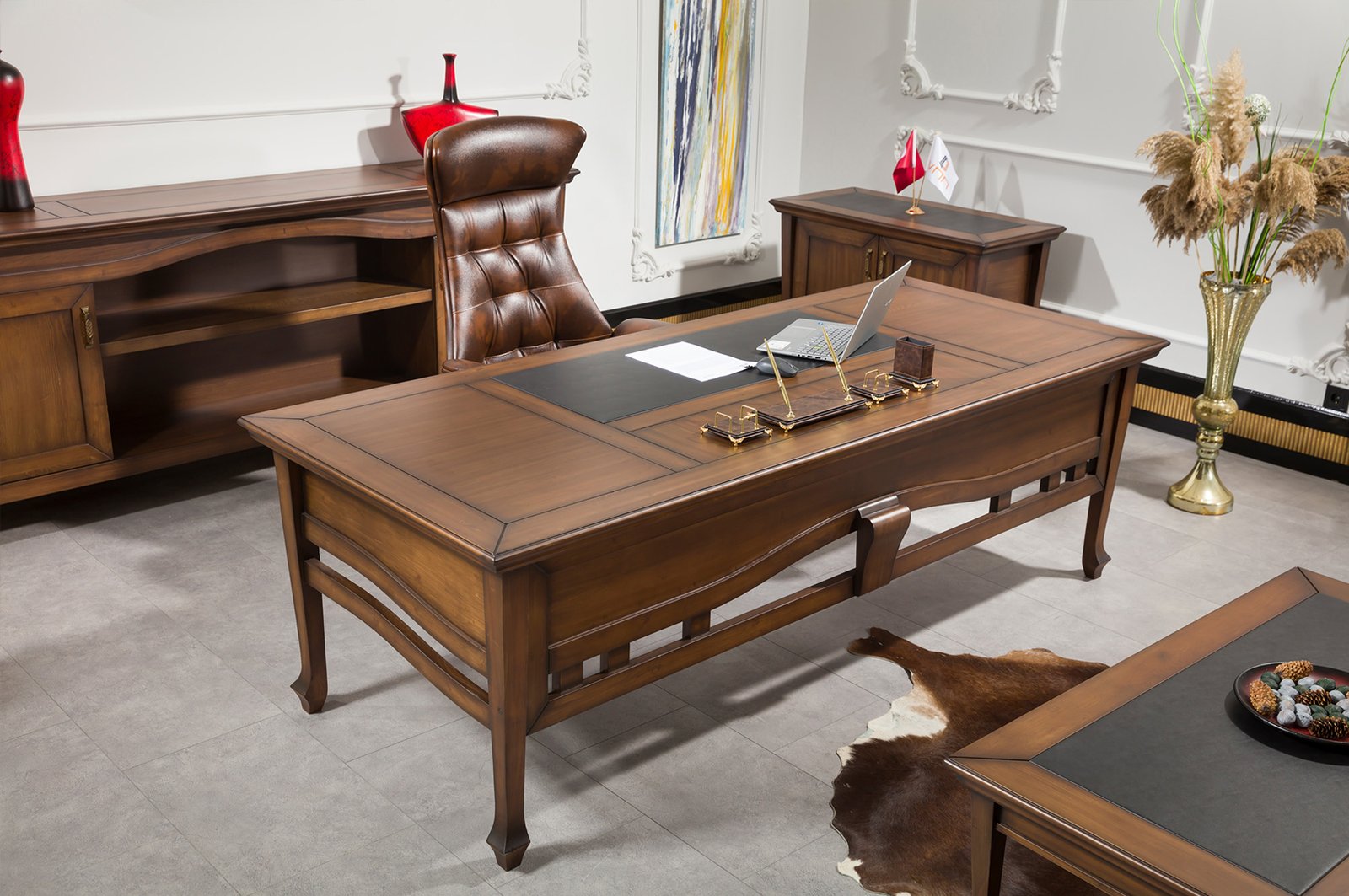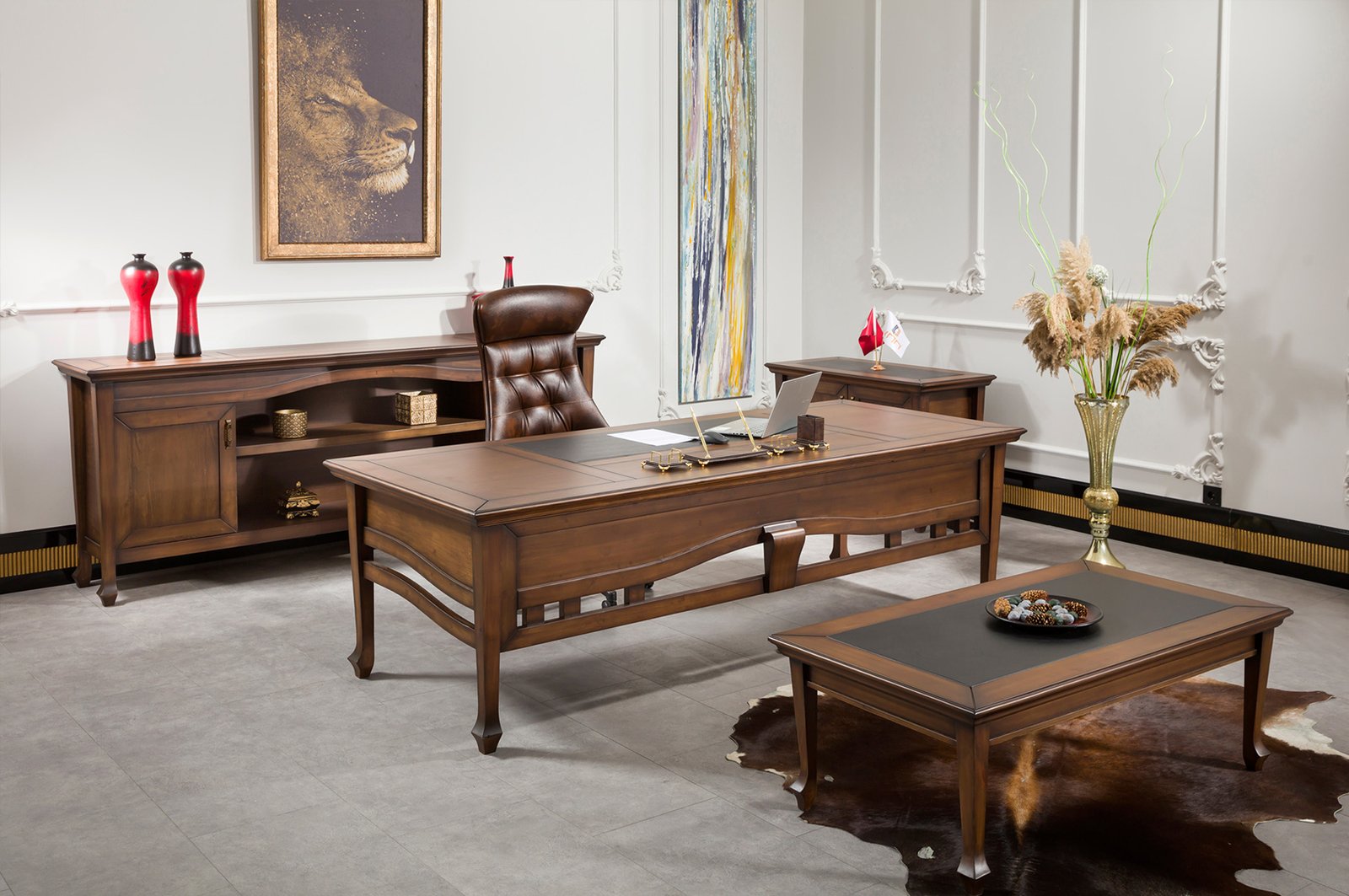 Koca Ofis Mobilya kalitesiyle üretilen DAKKA VIP yönetici masa takımı, profesyonel ofisler için uzun ömürlü ve prestijli bir tercihtir.