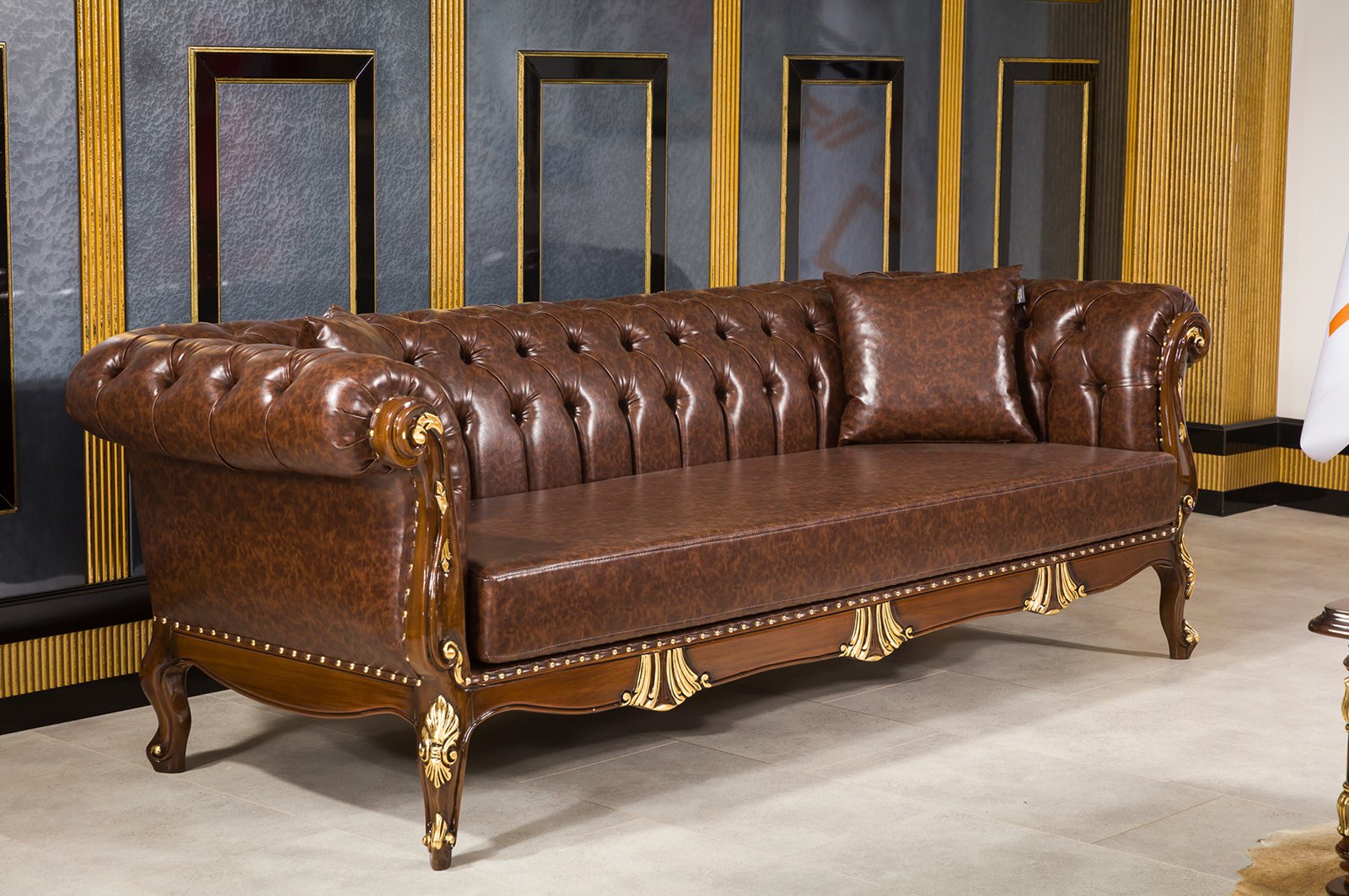 GRAND VIP yönetici masa takımı, yüksek kaliteli malzemeler kullanılarak üretilmiştir. Masanın gövdesi sağlam ve dayanıklı ahşap malzemeden yapılmıştır. Üzerindeki masaüstü ise zarif bir cam yüzeyi ile kaplanmıştır. Bu sayede, hem sağlamlık hem de şıklık bir arada sunulmuştur.