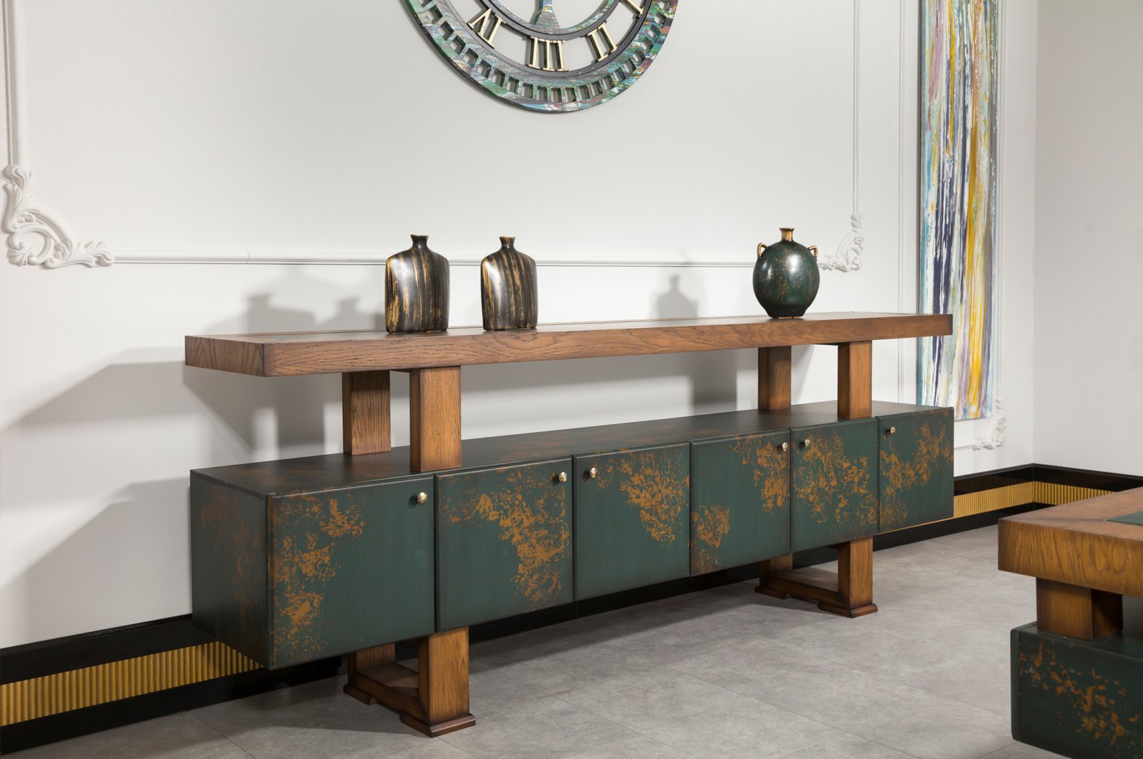GRESS VIP Yönetici Masa Takımı, bilgisayar ve evrak düzeni için ideal bir çalışma alanı sunar. Etajer ve dolap bölümleri belgeleri sınıflandırmanıza yardımcı olurken, orta ve yan sehpalar misafir ağırlama süreçlerine pratiklik katar. Sağlam gövde yapısı ve dengeli ayak sistemi titreşimi azaltır; temiz hatlar farklı ofis dekorasyonlarına kolay uyum sağlar.