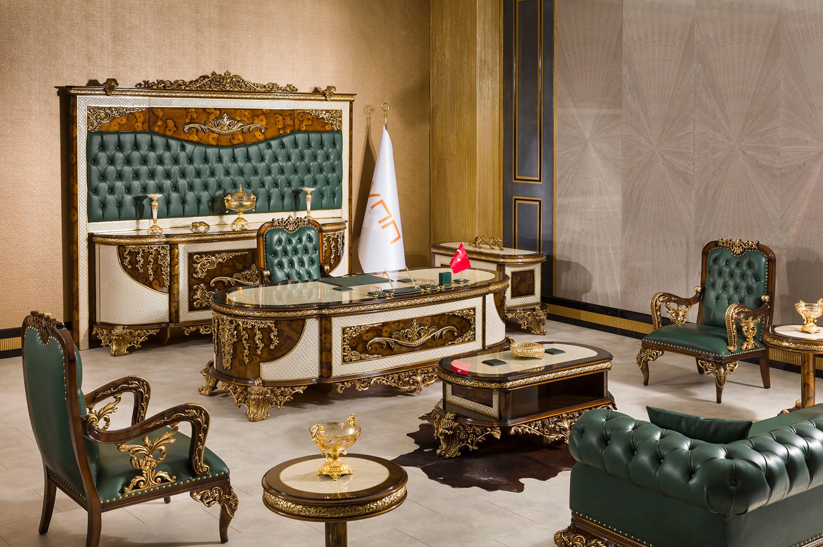 KHALIFA VIP Yönetici Masa Takımı ile prestij, ergonomi ve fonksiyonu aynı anda deneyimleyin. Yerinde keşif ve teklif için bizimle iletişime geçin.
