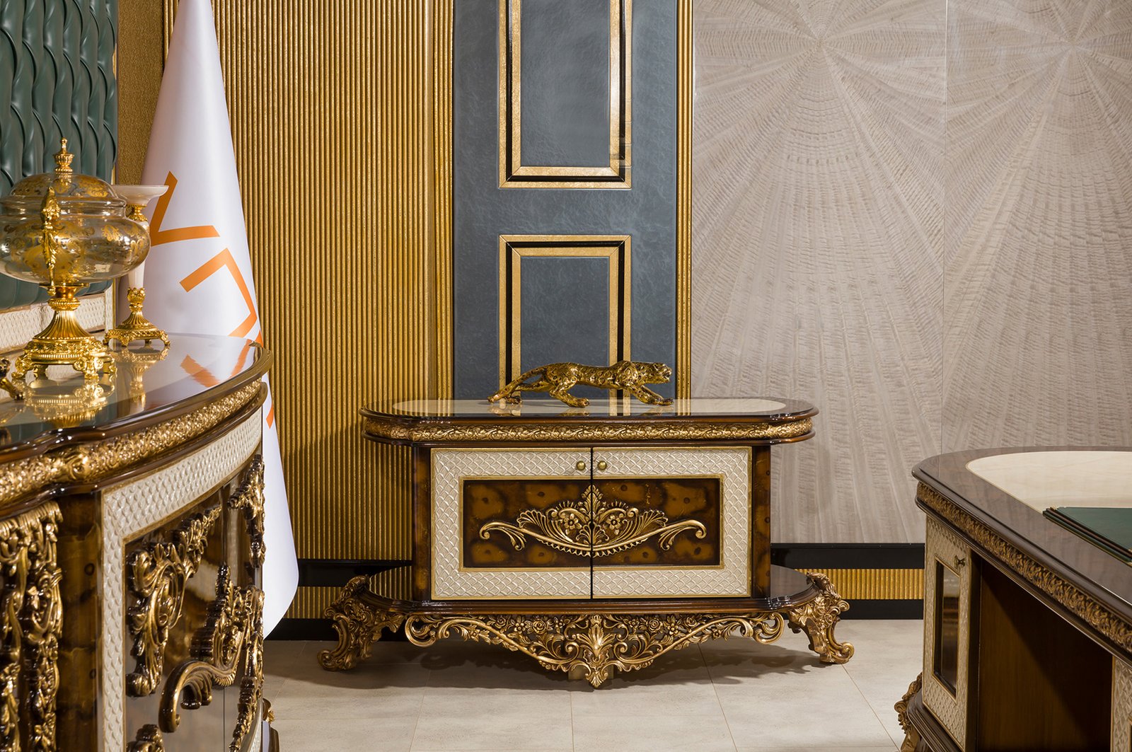 KHALIFA; yönetici odaları, toplantı alanları ve VIP misafir ağırlama bölümlerinde kusursuz bir bütünlük kurar. Geniş çalışma yüzeyi ve depolama kapasitesi, günlük operasyonu hızlandırırken; toplantı modülü ve sehpalar mekânın akışını destekler.