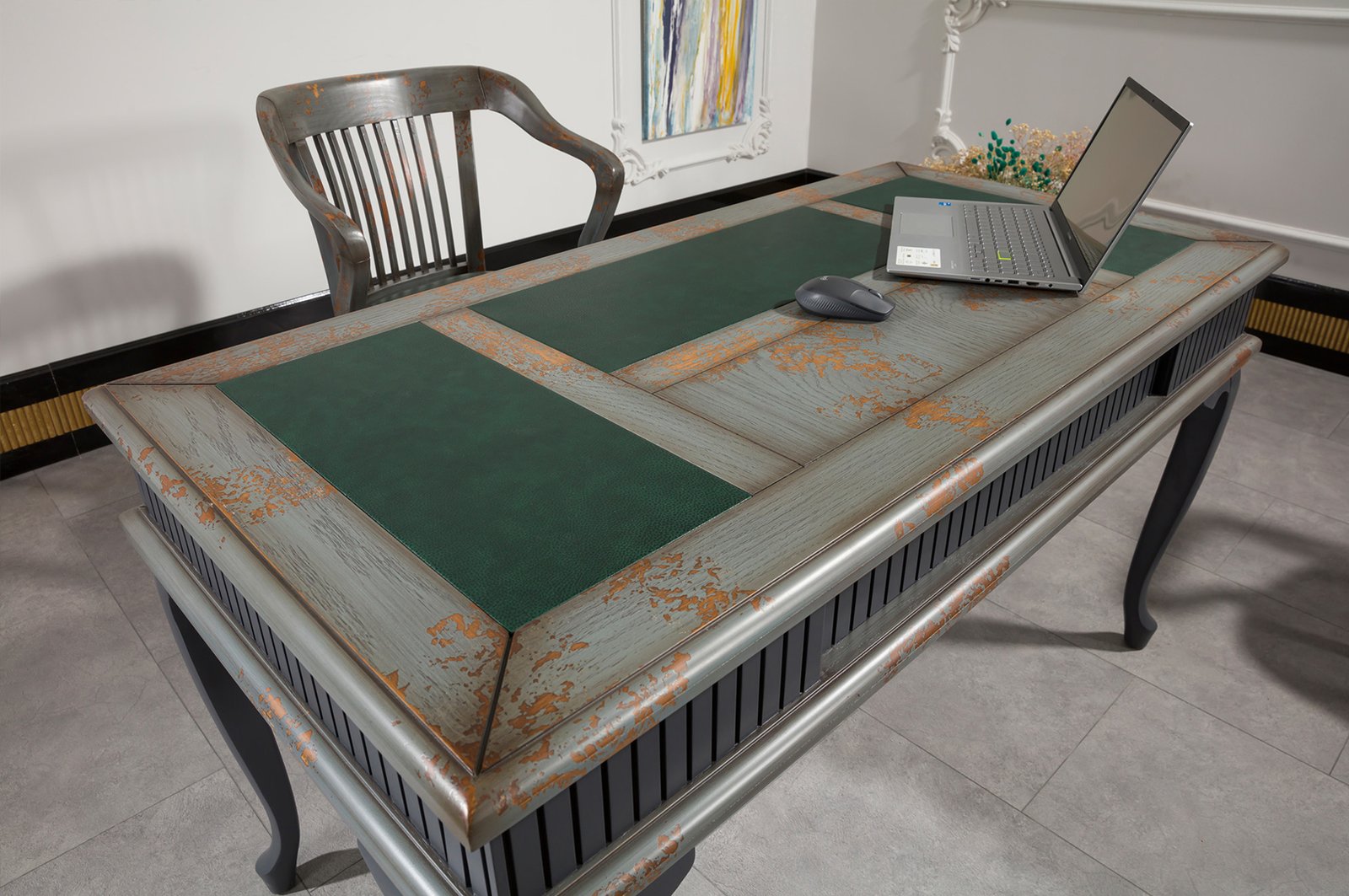 LÜKENS-Yeşil VIP yönetici masa takımı, yüksek kaliteli malzemeler kullanılarak üretilmiştir. Masanın gövdesi sağlam ve dayanıklı ahşap malzemeden yapılmıştır. Üzerindeki masaüstü ise zarif bir cam yüzeyi ile kaplanmıştır. Bu sayede, hem sağlamlık hem de şıklık bir arada sunulmuştur.