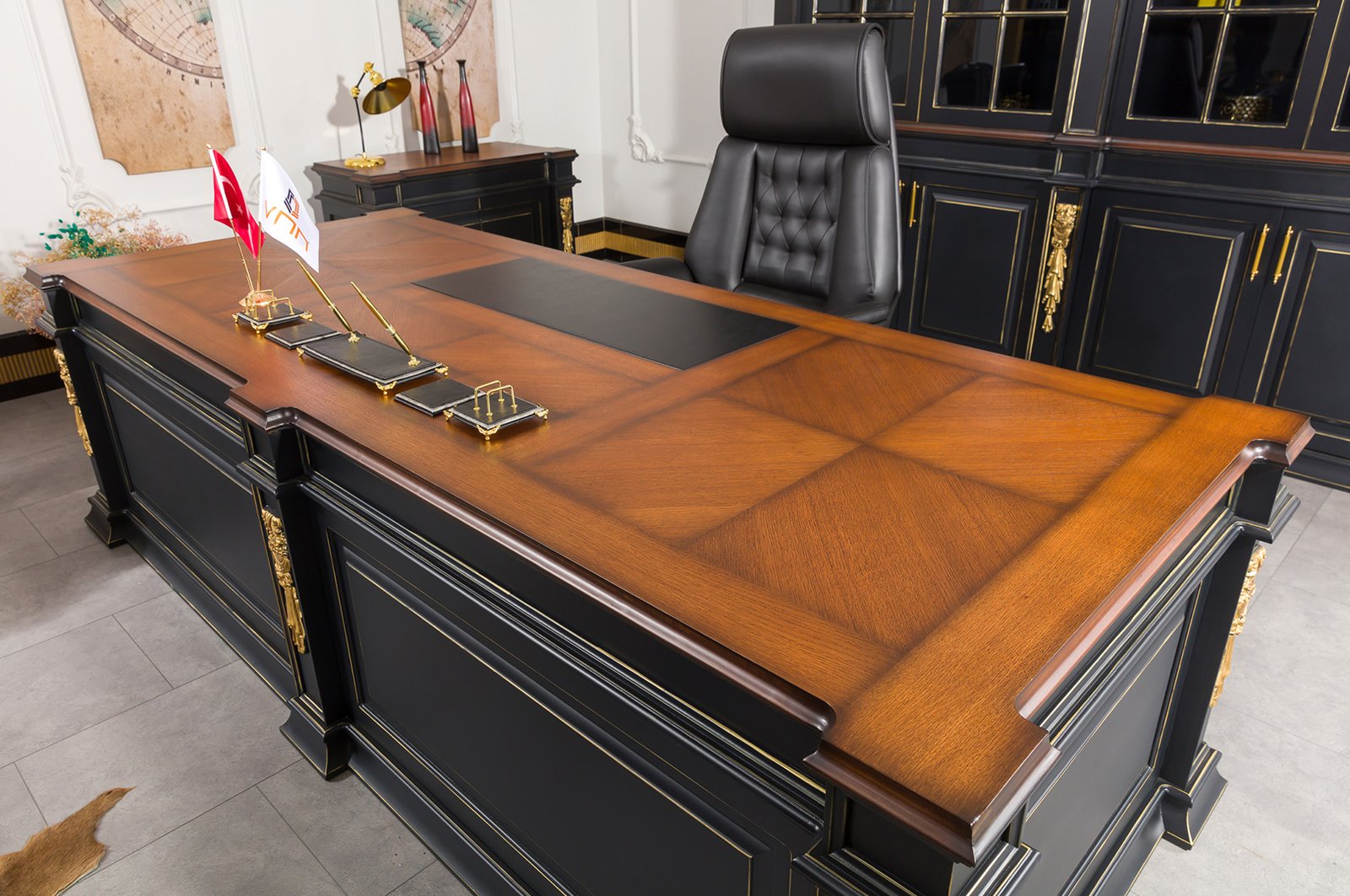 Üst düzey yöneticiler için tasarlanan Roma VIP, çalışma ortamında ihtiyaç duyulan tüm detayları düşünülerek hazırlanmıştır. Masanın geniş yüzeyi bilgisayar, evrak ve diğer çalışma ekipmanlarınız için ideal kullanım alanı sunarken, entegre dolap ve çekmeceler sayesinde belgeleriniz düzenli bir şekilde saklanabilir.