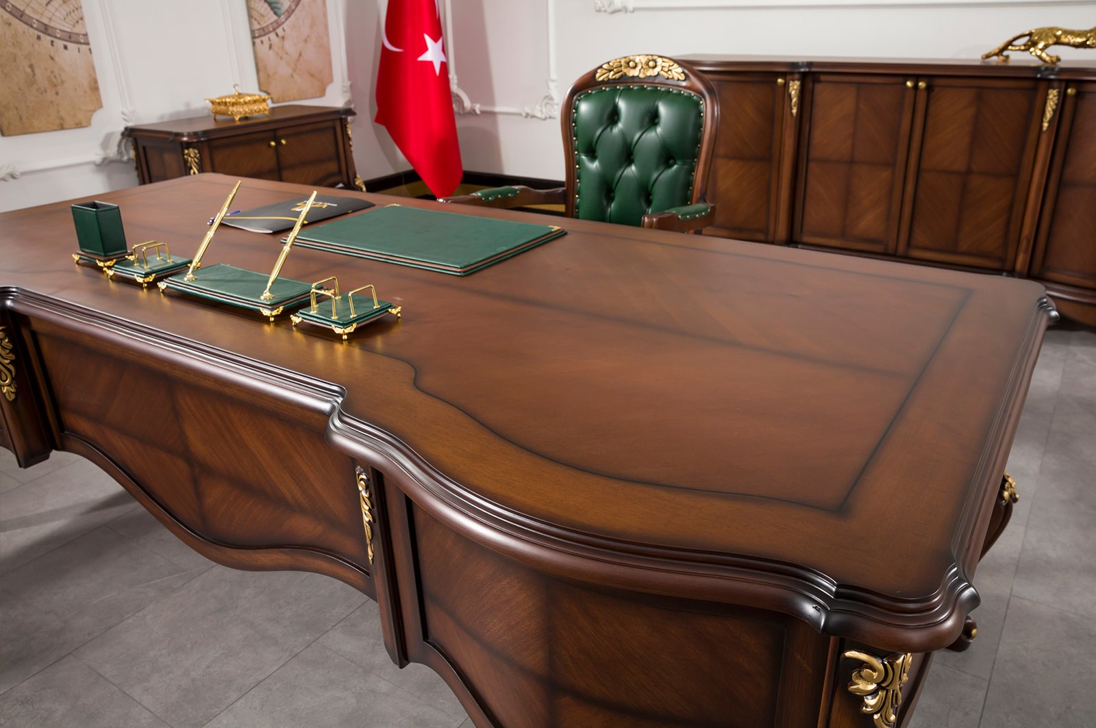 Koca Ofis Mobilya güvencesiyle sunulan Zebra–Mat VIP yönetici masa takımı; estetik, dayanıklılık ve işlevselliği tek bir sette buluşturarak çalışma alanınıza prestij katar. Modern yönetim ofisleri için ideal bir tercihtir ve uzun yıllar boyunca güvenle kullanılabilir.
